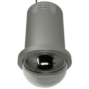 • Die Kamera ist wetterfest unter einer kleinen Kuppel aus Polycarbonat untergebracht. Die Position der Kamera unter der hochpolierten Kuppel wurde so gewählt, dass Verzerrungen minimiert werden. Im Lieferumfang ist eine L-Montageplatte mit 1/4-Zoll Stativanschluss enthalten. Mit der Platte kann die Kamera auch an einem Gebäude, bzw der Sternwarte befestigt werden.