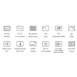 Dualband-WLAN: Die externe Dualband-Antenne, die sowohl 2,4-GHz- als auch 5-GHz-Frequenzen unterstützt, ermöglicht eine stabile und reibungslose Nutzung der Kamera innerhalb von 20 Metern. Mit der ASIAir-App von ZWO steuern Sie die Kamera und betrachten Sie die Bilder einfach per Smartphone.