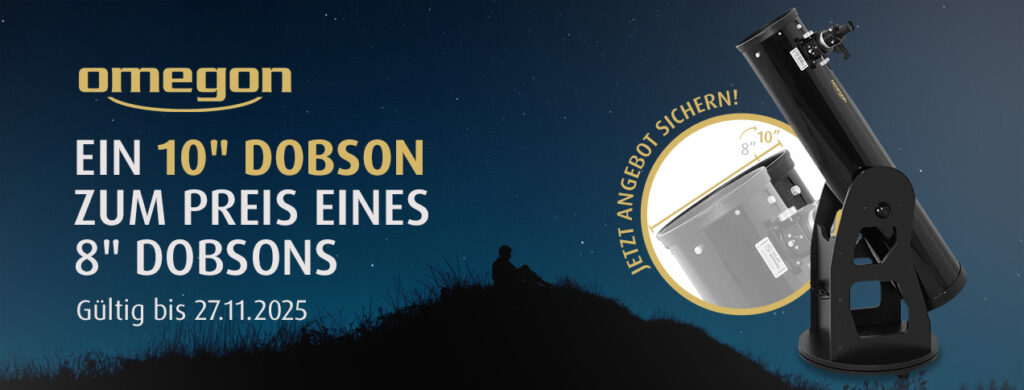 Nur vom 01.10. bis 27.11.2025: Jetzt bekommen Sie das Omegon Advanced Dobson N 254/1250 zum Preis des kleineren 8-Zoll-Modells.