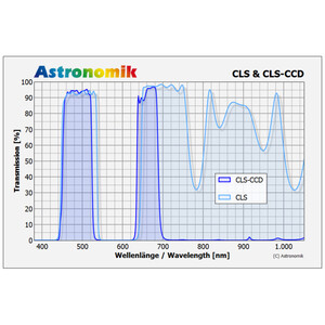 Der CLS CCD Filter erhöht den Kontrast zwischen astronomischen Objekten und Himmelshintergrund. Durch den breiten Transmissionsbereich kann eine große Lichtmenge den Filter passieren, Sterne werden so nur wenig abgeschwächt. Dieser Filter ist optimiert, um möglichst viel Störlicht zu blocken und möglichst viel Licht der Objekte durchzulassen. Der Filter ist für die Benutzung an Teleskopen aller Öffnungen mit Öffnungsverhältnissen von 1:2 bis 1:15 optimal geeignet.
