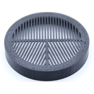 Die Fokusmaske nach Pavel Bahtinov erleichtert das exakte Fokussieren, auf das es insbesondere in der Astrofotografie ankommt. Die Maske wird vorne am Tubus, bzw. Objektiv angebracht. Beim Blick auf einen Stern erzeugt sie ein Strahlenmuster. Wenn der lange Strahl die beiden etwas kürzeren in der Mitte symmetrisch schneidet, ist der Fokus korrekt eingestellt. Durch die vielen Öffnungsschlitze ist die Bahtinov-Maske auch an relativ lichtschwachen Sternen einsetzbar. Das ist ein Vorteil gegenüber der klassischen Scheinerblende.