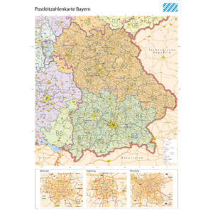 > Carte régionale GeoMetro Bayern Postleitzahlen PLZ (100 x 140 cm)