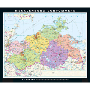 > Carte régionale PONS Mecklembourg-Poméranie occidentale physique/politique (178 x 148 cm)