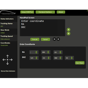 - Modifiez la vitesse de suivi, la vitesse de base et tous les autres réglages de base de la monture. Il est également possible de modifier tous les réglages qui ne peuvent pas être modifiés via le pilote ASCOM.