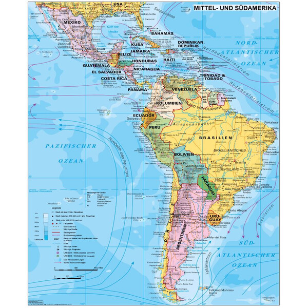 > Carte des continents Stiefel Amérique du sud & centrale politique (97 x 119 cm)