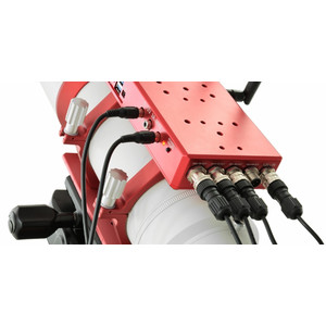 Le système dispose d'une entrée 12 V et de sept sorties 12 V. Vous pouvez donc alimenter tous vos instruments en même temps à l'aide d'une batterie compacte ou d'un seul transformateur électrique. La monture, les systèmes de refroidissement de la caméra et les rubans chauffants se connectent directement à EAGLE. Un système de gestion sophistiqué vous offre un contrôle total. Vous pouvez par exemple régler la tension de trois des sorties entre 0 V et 12 V (idéal pour les rubans chauffants). Toutes ces possibilités de connexion vous permettent d'installer l'ensemble de votre équipement en une seule fois et de le connecter avec une gestion optimale des câbles. Le seul câble dont vous aurez à vous soucier est celui qui alimente l'EAGLE.