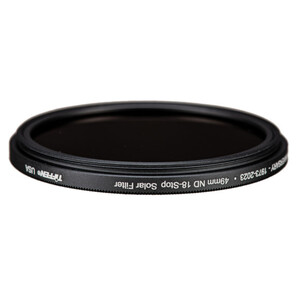 Ce filtre solaire à densité neutre de Tiffen, en édition spéciale pour le 50e anniversaire, est un filtre de haute qualité avec un facteur de filtration de 262,144x, qui réduit l'exposition de 18 diaphragmes. Sa densité de 5,4 assombrit l'ensemble de l'image et permet ainsi de prendre des photos avec une plus grande ouverture ou un temps d'exposition plus long tout en réduisant le risque de surexposition. Vous pouvez ainsi obtenir des photos du soleil plus détaillées que dans des conditions normales.