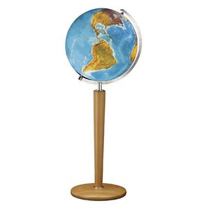 La carte physique (globe allumé) représente les massifs montagneux, les plateaux, les plaines et les fonds marins.