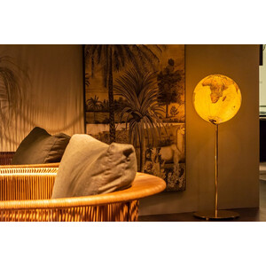 Le détail essentiel : un globe a besoin d'un support solide pour déployer tout son effet. Avec le pied Regent, le modèle sur pied repose sur un grand pied métallique à bords plats et tourne dans un méridien métallique en laiton.