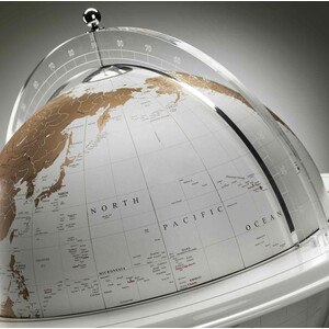 La base du globe est composée de 4 pieds tournés en bois de hêtre laqué noir, qui confèrent au globe un aspect élégant et sobre. La couleur spéciale et le méridien en cristal acrylique sont les points forts de l'Elegance : ce mélange crée une sensation de sérieux qui transforme votre maison en un lieu de réflexion et d'étude.
