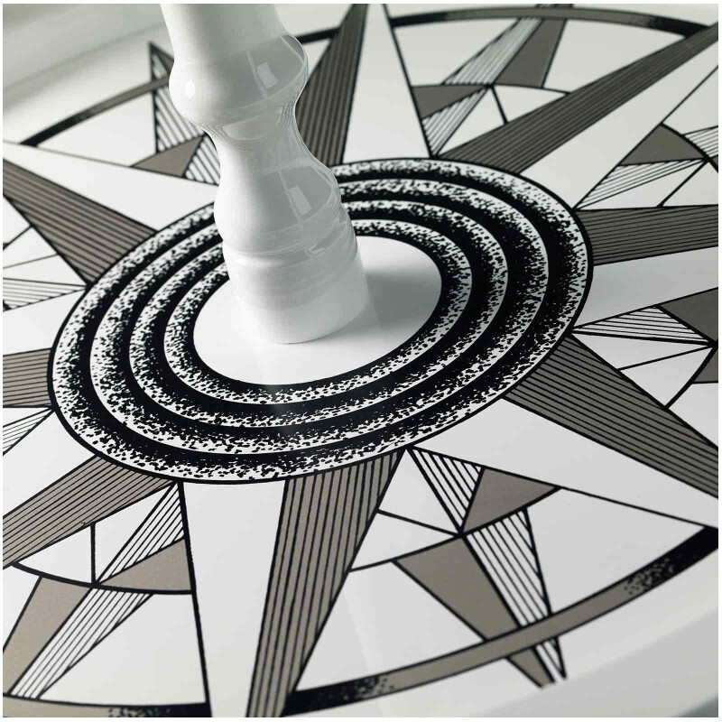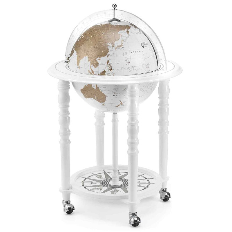 La tablette inférieure est soigneusement décorée d'une rose des vents moderne qui s'harmonise parfaitement avec le reste du globe. Surprenez vos invités avec ce globe de bar moderne !