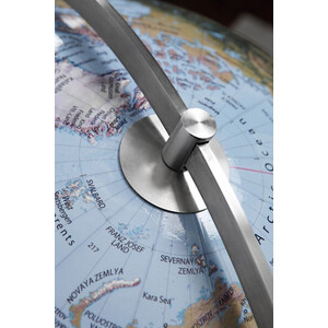 Ce globe sur pied extrêmement représentatif allie avec brio tradition et modernité. Une sphère traditionnellement laminée à la main d'un diamètre impressionnant de 75 cm est associée à un support au design moderne en acier inoxydable brossé.