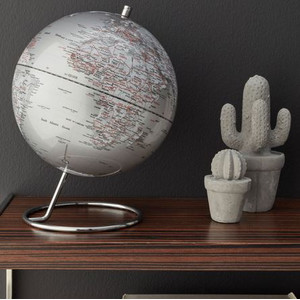 Le globe GALAXY, de 240 x 310 millimètres, avec inscriptions en anglais, montre notre planète avec une carte géographique topographique, telle qu'elle se présente vue de l'espace. L'axe central simule l'axe de rotation de la Terre et permet une observation sous tous les angles. Pour une stabilité maximale, le globe repose sur un support chromé de haute qualité .