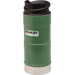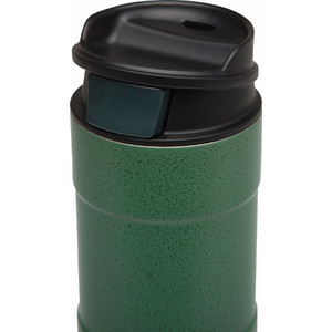 Ce mug isotherme à double paroi en acier inoxydable 18/8 fait partie de la célèbre série Stanley Classic. Il séduit par son design attrayant en vert martelé. Le bouton à déverrouiller avec l'index vous permet de boire rapidement d'une seule main lors de vos randonnées, à vélo ou au travail. L'isolation sous vide maintient vos boissons chaudes ou froides pendant de nombreuses heures. Le couvercle amovible peut être facilement nettoyé au lave-vaisselle. Sans BPA