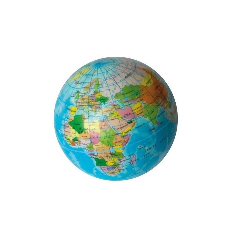 Sur le ballon, on retrouve tous les pays, les continents et les océans.