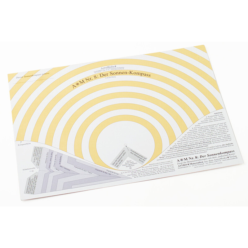 Voici comment procéder : placez la boussole solaire sur une surface horizontale bien ensoleillée, en direction du point où se trouve le soleil à midi. Pendant une journée, au moins entre 11 h et 14 h, suivez le mouvement de l'ombre et marquez précisément les points où la pointe de l'ombre touche l'un des cercles. Le soir, reliez les deux points de contact situés sur le même cercle par un trait. Ces segments sont exactement orientés est-ouest. Si vous divisez ces segments en deux et reliez les points de division au centre des cercles, vous obtenez une ligne orientée exactement nord-sud.