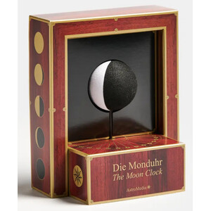 Si l’horloge lunaire d’AstroMedia s’inspire des grandes horloges astronomiques du Moyen Âge, elle est sans doute la première et la seule au monde, en tant qu’horloge murale ou de table, à afficher l’évolution des phases lunaires de cette manière. L’assemblage de ce kit en carton doté d’un mécanisme d’horlogerie spécial est simple et permet d’obtenir rapidement un résultat très raffiné.