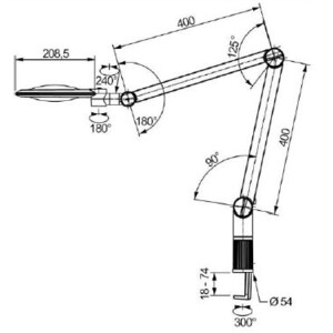 - Plage de pivotement de la tête de loupe : 180 degrés.