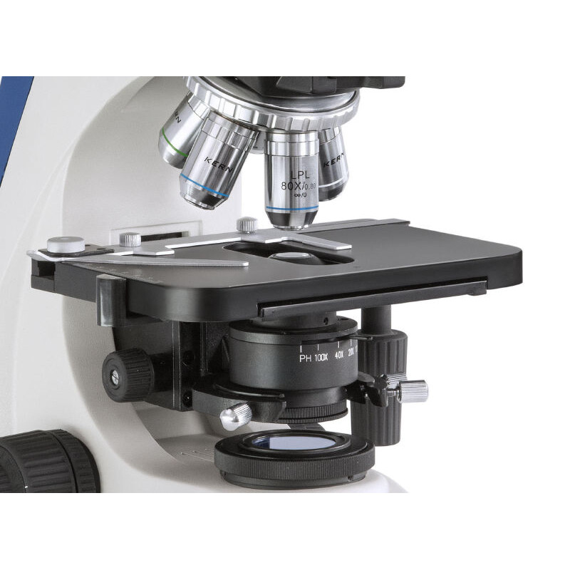 • Avec la variante à lumière transmise (série KERN OKO), vous disposez d’un condenseur ABBE 1,25 centrable et à hauteur réglable ainsi que d’un diaphragme de champ pour un éclairage de Köhler très professionnel