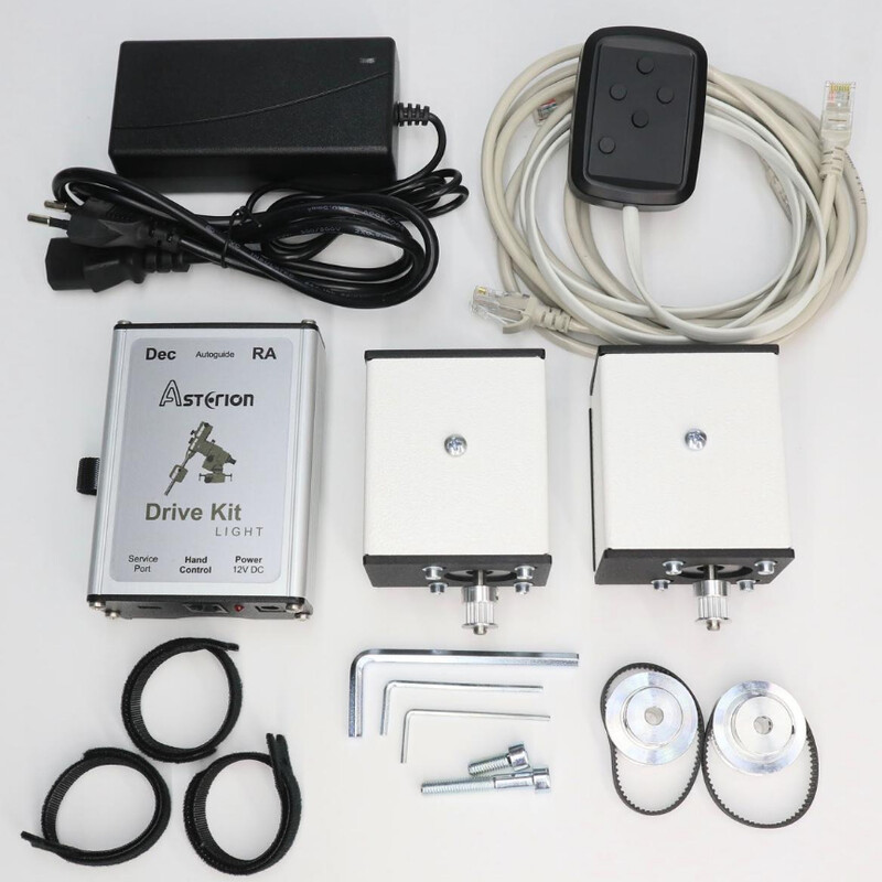 Ce kit vous permet de motoriser votre monture. Les moteurs vous permettent d'effectuer des mouvements précis. Ils suivent l'objet réglé afin qu'il reste centré dans l'oculaire ou le capteur de la caméra. Même le plus petit mouvement du tube du télescope est désormais entièrement contrôlé, l'objet observé est suivi avec une grande précision, même à des grossissements extrêmes.