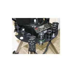 A visser simplement sur le trépied, il peut y rester en permanence. Le support peut accueillir 5 oculaires 2'' et 9 oculaires 1,25". Des emplacements pour la télécommande du nouvel AutoStar, et pour celle du LX200 Classic sont également disponibles.
