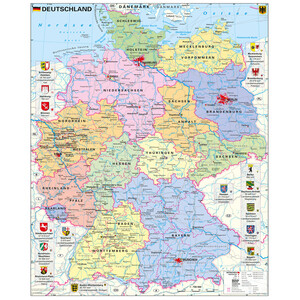 > Carte géographique Stiefel Deutschland politisch mit Wappen (97 x 119 cm)