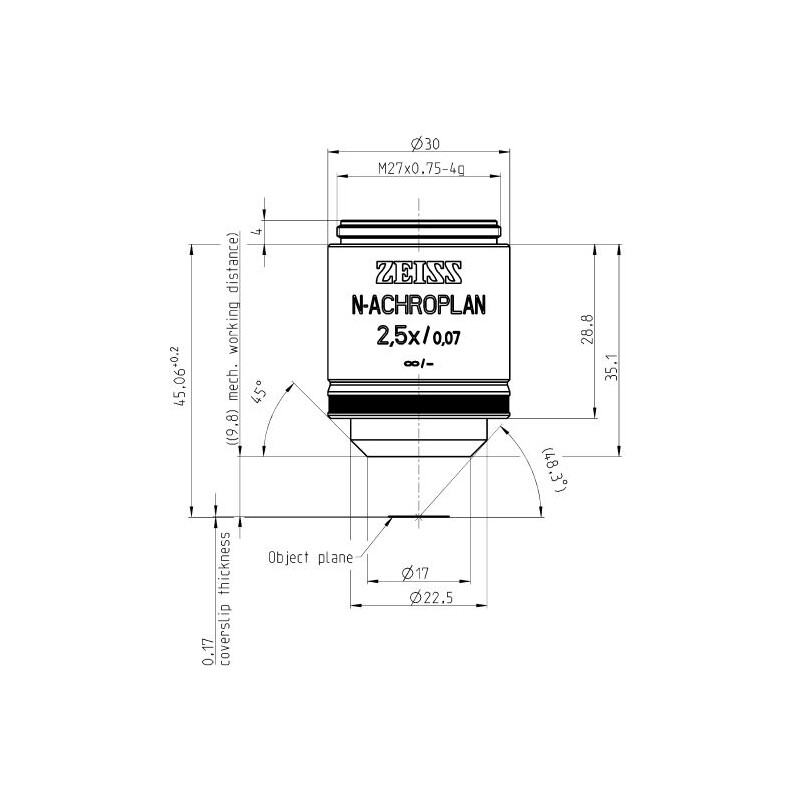 ACHROPLAN : variable comme aucun autre Les objectifs ACHROPLAN offrent une bonne correction chromatique et une bonne correction de champ et sont parfaitement adaptés à la microphotographie. Les objectifs ACHROPLAN sont disponibles dans de nombreuses versions afin de répondre à un large éventail d'applications. Les procédés de contraste possibles sont le champ clair et le contraste de phases en lumière transmise, ainsi que la fluorescence en excitation dans le domaine visible.