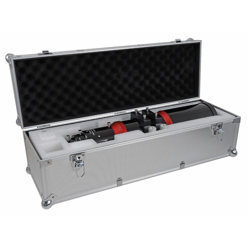 L'optique AP 110/660 ED, avec son rapport d'ouverture rapide de f/6, est plus lumineuse que les simples optiques ED-Apos qui ont normalement f/7 à f/9. Pour obtenir malgré tout une bonne correction chromatique, le verre spécial FPL51 a été complété par un autre verre spécial (verre au lanthane). On obtient ainsi une correction équivalente à celle d'un réfracteur ED normal de f/7 à f/8. La grande luminosité offre également des avantages pour l'astrophotographie, en une seule nuit, il est possible d'exposer un objet à travers. Vous trouverez des correcteurs de champ adaptés dans la section Accessoires.