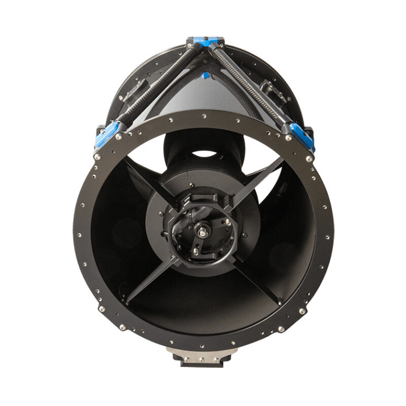 Le miroir principal du DeltaRho est fixé de manière rigide, comme sur les CDK de PlaneWave Instruments. Cela rend le réglage extrêmement simple. De plus, les ingénieurs de PlaneWave ont conçu un nouveau dérotateur ultra-court et un dispositif de mise au point avec adaptateur Tip/Tilt, qui peuvent être utilisés séparément ou ensemble. L'avantage d'un miroir principal fixe est ainsi combiné à un réglage très simple : seules les trois vis de réglage du miroir secondaire sont nécessaires pour la collimation.
