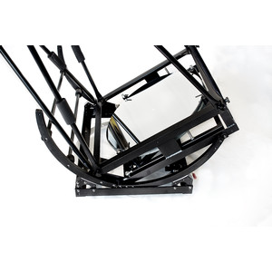 - Un logement du miroir à la conception ingénieuse : le télescope Dobson possède un système de suspension extrêmement fiable et optimisé qui stabilise parfaitement le miroir. Le système de collimation à trois points est complètement séparé de la boucle latérale de maintien. Ainsi, on évite l'astigmatisme parabolique qui se forme souvent lorsqu'on utilise un simple système de collimation avec 3 vis de collimation à travers la boucle. Lors de la collimation du miroir primaire dans un système de collimation simple, la boucle peut serrer le miroir axialement sur son bord, ce qui confère au miroir une forme parabolique et provoque un astigmatisme gênant.