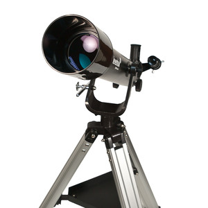 Cette monture, facile à utiliser, est très appréciée par les débutants en astronomie. Le réglage en azimut et hauteur se fait aisément en bougeant tout le télescope. L'avantage pour le débutant: il n'a pas à se préoccuper de l'alignement du télescope avant de pouvoir commencer l'observation. L'instrument est donc rapide et facile à monter - On installe le trépied avec la monture, on met le télescope en place … et c'est parti! Le réglage fin peut être bloqué sur les deux axes; une fois localisés, les objets terrestres restent donc dans le viseur. La monture est fixée sur un trépied en aluminium réglable en hauteur.