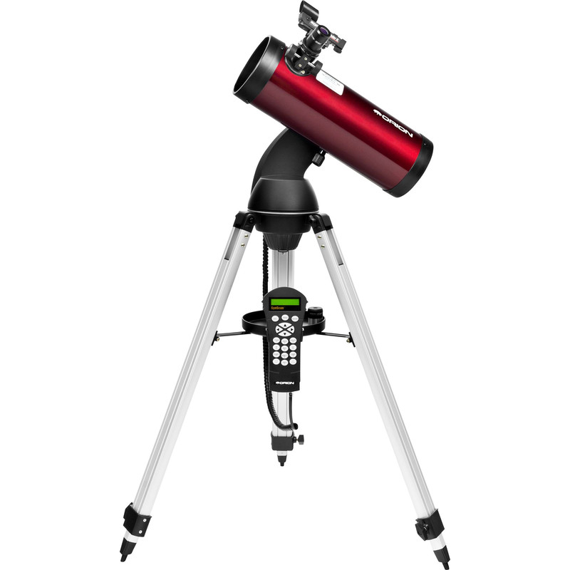 La monture à un bras d'Orion, équipée d'un système GoTo précis et performant, aide même les débutants à réaliser leurs premières observations de manière simple et facile. Finies les recherches désespérées pour localiser l'objet convoité dans le ciel. Finis les manipulations fastidieuses des cartes du ciel pour s'orienter tant bien que mal dans le ciel. La monture pointe automatiquement plus de 42 000 objets, est très simple à aligner à l'aide de deux étoiles et se monte et se démonte facilement. Le boîtier de commande est intuitif, mais n'est actuellement disponible qu'en anglais. La monture ne pèse qu'environ 4 kg et est donc très facile à transporter, même en voyage.