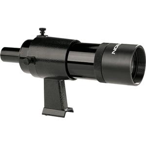 Large-aperture finder scopes let you see fainter objects than smaller finders, and this one will literally show you the light! It has a fully coated, 50mm achromatic objective lens with adjustable focus. It has 9x magnification and a standard (inverted) 5.5-deg field of view with superimposed crosshairs. The aluminum tube is baffled and blackened inside to enhance contrast. This finder comes with a cast-aluminum bracket with a dovetail foot that fits most Orion telescopes. A dovetail mounting base is also available for installation of this finder scope on non-Orion telescopes. Alignment of the finder scope is easy and intuitive by virtue of two perpendicular nylon thumbscrews and an opposing spring-loaded pin. Weighs 16 oz. Black. One-year limited warranty.