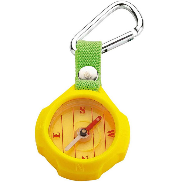 Einfacher, aber robuster Kompass zur Bestimmung der Himmelsrichtung für große und kleine Entdecker. Die flüssigkeitsgedämpfte Kapsel sitzt in einem stoßabsorbierenden, gelben Gummigehäuse. Eine grüne, elastische Schlaufe mit kleinem Karabiner erleichtert die Befestigung.