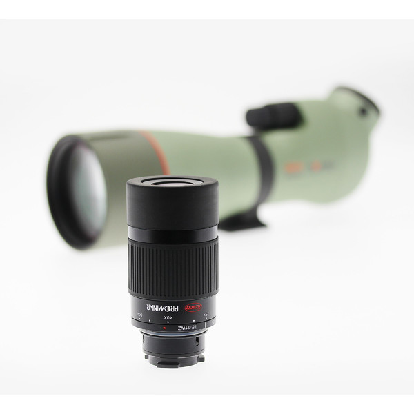 Im Lieferumfang befindet sich das Weitwinkel-Zoomokular TE-11WZ. Dieses ebenfalls wasserdichte Okulare mit Brillenträgertauglicher Augenmuschel bietet Ihnen einen Vergrößerungsbereich von 25-60fach.