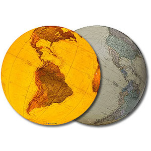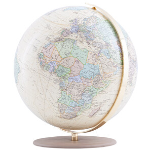 Der Globus Royal zeigt die politisch aktuelle Situation unseres Planeten in warmen Farben und nostalgischem Stil. Die politischen Grenzen treten bei Beleuchtung in den Hintergrund und ein detailliertes, nicht fühlbares Relief aus Höhen und Tiefen wird sichtbar.