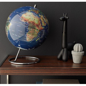 Der 240 x 310 Millimeter große, englisch beschriftete Globus GALAXY zeigt unseren Planeten mit topografischer Landkarte – also so, wie er sich aus der Perspektive des Weltraums präsentiert. Die mittige Achse simuliert dabei die Rotationsachse der Erde und ermöglicht eine Betrachtung von allen Seiten. Fü̈r eine maximale Stabilität ruht der Globus auf einem hochwertig verchromten Gestell.
