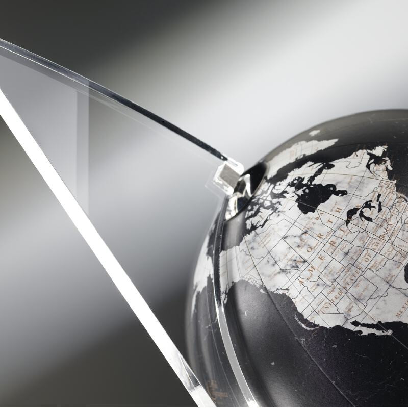Dieses Accessoire eines jeden geschmackvollen Interieurs wird aus Edelstahl und Acrylglas hergestellt. Die scheinbar schwebende Planetenkugel ist drehbar und mit einer aktualisierten und eleganten Karte beschichtet ist.