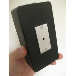 Auf der Unterseite des easy star befindet sich eine Aluminiumplatte mit einem 1/4"-Fotogewinde. Mit diesem Gewinde können Sie den easy star auf einem Fotostativ befestigen. Damit sie den künstlichen Stern im Gelände leicht finden, lässt sich die Lochblende zur Seite drehen. Haben Sie das Teleskop auf den easy star ausgerichtet, drehen sie die Lochblende vor die grüne LED. Das in der Blende befindliche Loch mit einem Durchmesser von 0,05 Millimeter erzeugt einen sauberen künstlichen Stern. Die Justage der Optik kann nun beginnen.