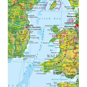 - physische Abbildung der Britischen Inseln und Irland mit UNESCO Welterbestätten und Nationalparks mit Übersicht in Tabellenform