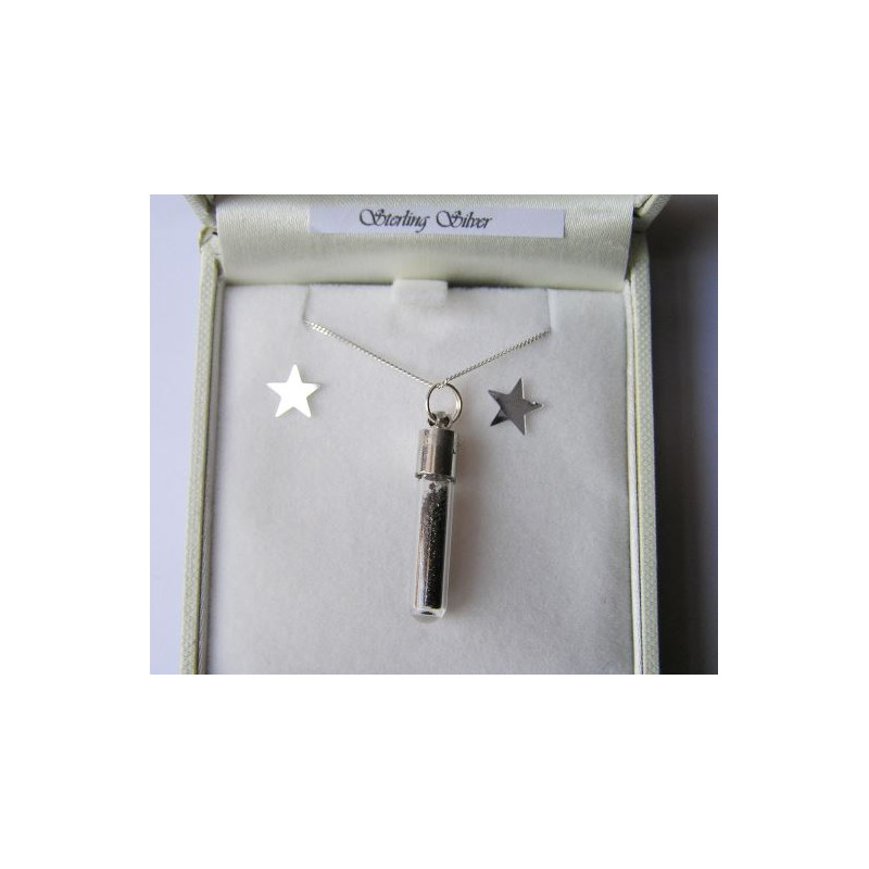 Meteoriten faszinieren die Menschheit seit eh und je - jetzt können Sie einen Teil von Meteoriten um den Hals tragen! Sicher und geschützt enthält dieser Anhänger echten Meteoritenstaub im Glas. Der Staub wurde beim Verarbeitenvon mehreren Eisenmeteoriten gesammelt und in kleine Glasbehälter gefüllt.