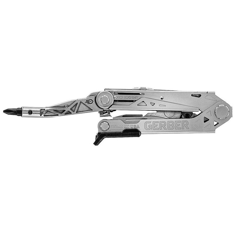 Das Multi-Tool CENTER DRIVE von Gerber wird jetzt in der PLUS Variante auch mit einer Schere angeboten. Geblieben ist natĂŒrlich das namensgebende Feature - der Vollformat-Schraubendreher mit zentrierter Achse, der dem CENTER DRIVE eine Ergonomie und ein Drehmoment bietet, wie man es bei Tools selten findet. Da es auĂerdem Standard-Bits verwendet, wird beim CENTER DRIVE der Schraubendreher ein vollwertiges Werkzeug. Weitere Highlight-Funktionen sind die mit einer Hand ausfahrbare Zange mit Carbid-Cuttern sowie die ungewöhnlich lange Messerklinge (8,3 cm) aus rostfreiem Stahl 420HC mit TeilsĂ€gezahnung. VervollstĂ€ndigt wird die FunktionalitĂ€t durch einen Nagelentferner, eine Kratzklinge, einen Flaschenöffner, eine Feile und eine Wechselbit-Halterung. Lieferung inklusive hochwertigem Leder-Etui und Bitsatz.