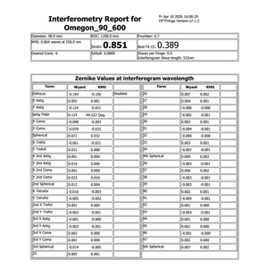Mängel: Ausstellungsstück mit Muschelbruch. Optische Leistung 0,85 Strehl, siehe interferometrisches Protokoll