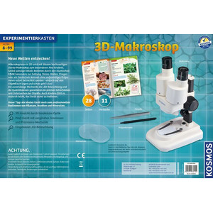Das 3D-Makroskop von KOSMOS bietet gerade Kindern und Anfängern einen besonders leichten Einstieg in die Mikroskopie. Denn ohne vorheriges Präparieren können flache Gegenstände aus Natur und Alltag ganz einfach betrachtet werden. Die zuverlässige Mechanik, die LED-Beleuchtung und die Qualitätslinsen garantieren ein präzises Scharfstellen und Untersuchen der Objekte. Zusammen mit der 20fachen Vergrößerung offenbart sich dem Betrachter so eine ganz neue Welt. Auf einmal werden kleine Härchen sichtbar wo vorher keine waren, der kleine Stein wird zur Kraterlandschaft und die Fingernägel sind doch nicht so sauber, wie man dachte! Die ausführliche Anleitung erklärt den Umgang mit dem Makroskop Schritt für Schritt und gibt Tipps, welche Objekte sich besonders lohnen.