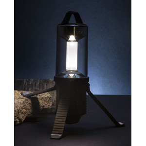 Diese moderne LED-Laterne möchten Sie bei keinem Campingausflug mehr vermissen. Vorbei die Zeiten von Petroleum- oder Gasgerüchen und abgebrannten Dochten. Mit dieser LED-Laterne entsteht eine romatische Stimmung mit warmweißer LED. Die maximale Helligkeit liegt bei 200 Lumen. Es stehen Ihnen verschiedene Lichteinstellungen zur Verfügung. Zum Ausgleich unebener Bodenbeschaffenheiten können die Beine der Laterne in verschiedenen Positionen ausgerichtet werden. Zum Transport lassen diese sich um den Lampenkopf zuklappen. Am Haltegriff befindet sich ein Karabiner, um die Laterne an Zeltstangen oder Ähnlichem aufzuhängen.