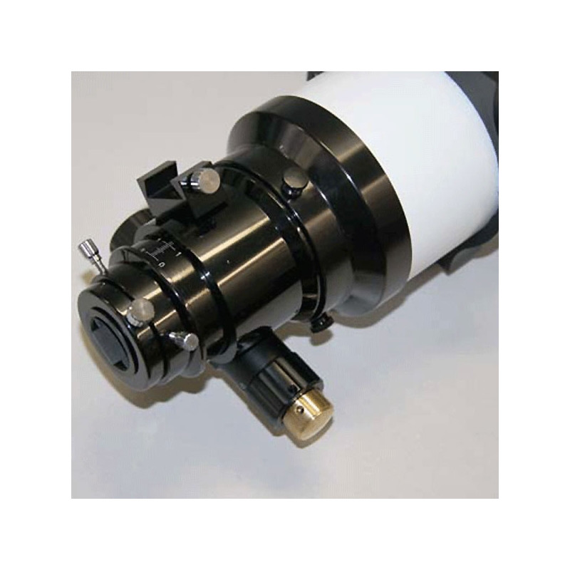 Ausgestattet ist der Apo mit dem ZTA (Zahntriebauszug) von APM. Dieser trägt auch schwere fotografische Austrüstung, ist rotierbar und mit einem 1:10-Feintrieb ausgestattet. Durch die Rotation haben Sie die Möglichkeit, das Fotozubehör in die jeweils benötigte Stellung zu drehen.