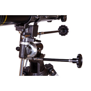 Die Montierung EQ-1: Diese parallaktische Montierung bietet bereits die Möglichkeit, Optiken auf den Polarstern auszurichten. Es kann für jeden Beobachtungsort die richtige Polhöhe bzw. geografische Breite eingestellt werden. Mit Feinbewegungen in der Rektaszensions- und Deklinationsachse lassen sich Objekte feinfühlig einstellen und verfolgen, ein Gegengewicht sorgt hierbei für die genaue Austarierung der Optik.
