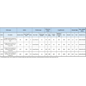 - Gewichte: OTA 11,1kg, Transportkoffer 22,5kg