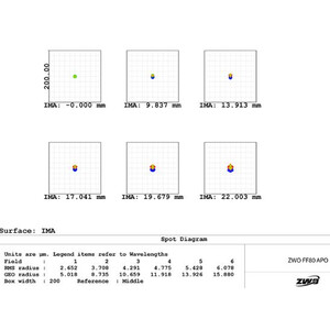 Der ZWO FF80 Quadruplet ist ein sehr kompakter apochromatischer Refraktor für die Astrofotografie mit einem korrigiertem Bildfeld bis Vollformat und die Beobachtung bis in den höchsten Vergrößerungsbereich. Das Teleskop hat ein Öffnungsverhältnis von f/7,5 bei einer Brennweite von 600mm. Der FF80 ist ein Quadruplet-Design mit zwei ED-Gläsern, was eine hervorragende Unterdrückung von chromatischer Aberration ermöglicht.